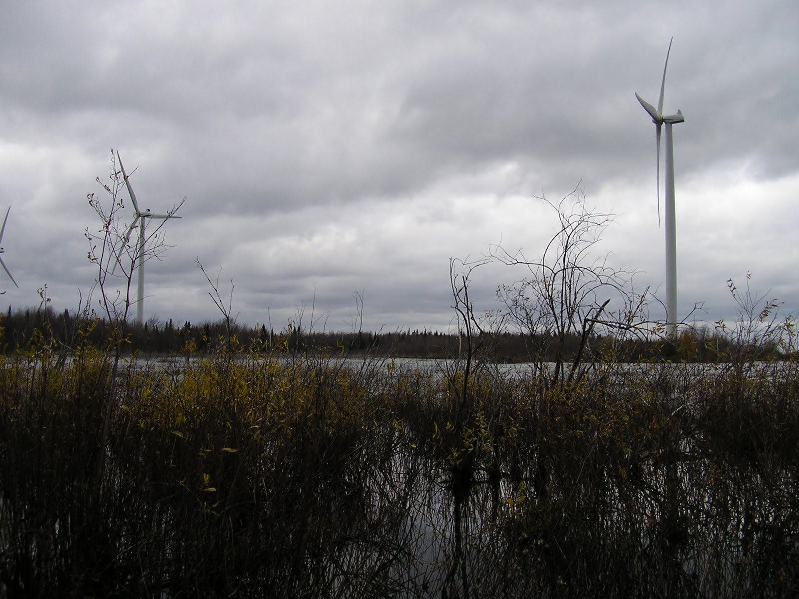 Standing in front of one of these Turbines the Blades are about 20 feet over my head, when the blades make their circle they make a swoosh sound, it was cold and spitting snow when this picture was taked.