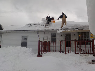 They shoveled it down to allow the ice dam on the edge to melt. the Pitch of the back roof is only 2 in 12 !